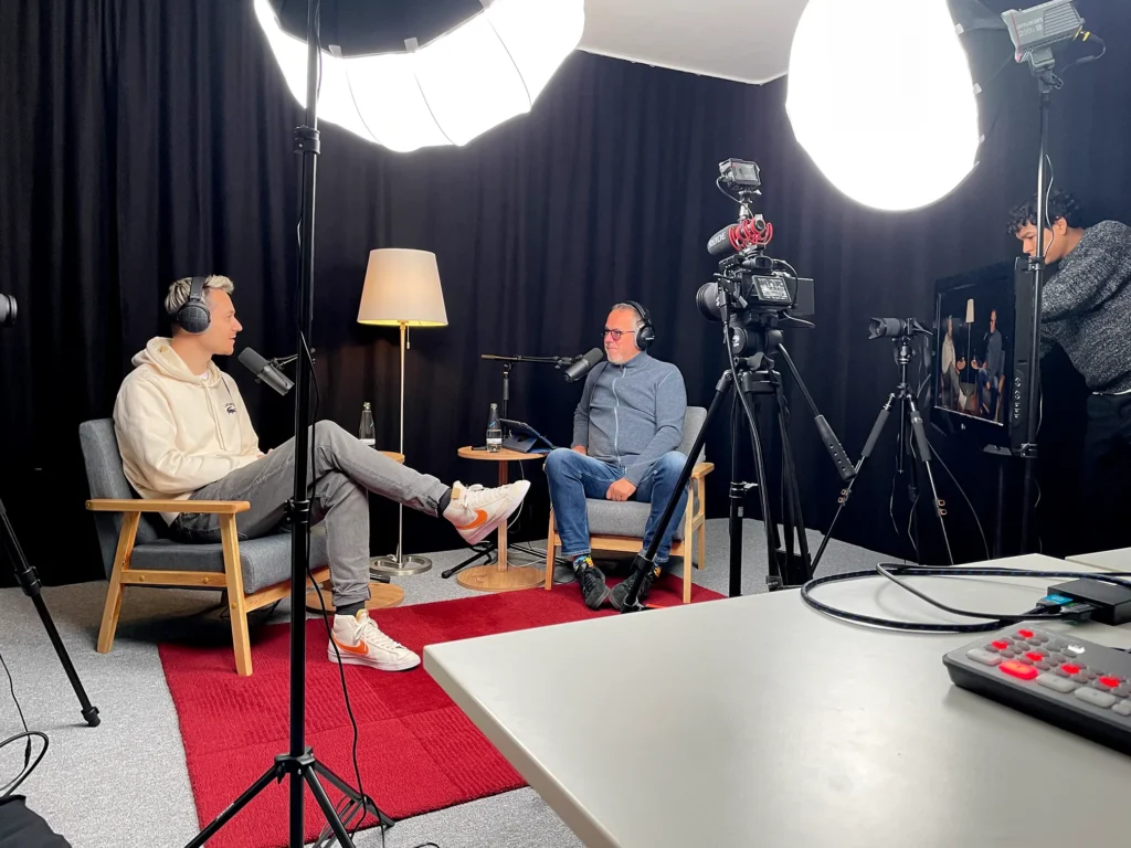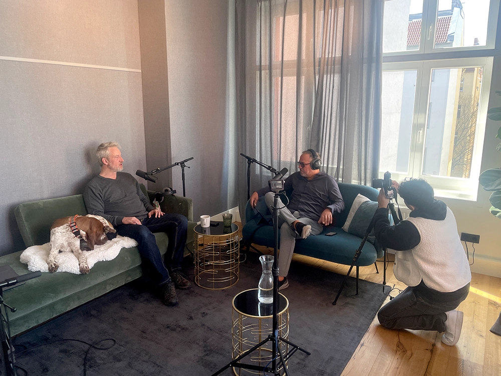 Flowstudio Berlin, Podcaststudio mit Sofas, Podcastproduktion mit Podcastsetting